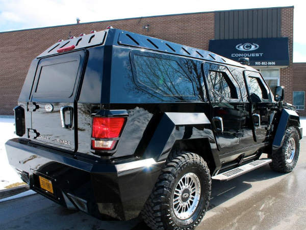 கான்கொஸ்ட் எக்ஸ்வி கவச வாகனத்தின் அடிப்படையில் தனிநபருக்கான மாடலாக இந்த எவேட் எஸ்யூவி விற்பனைக்கு வந்துள்ளது. டொரன்ட்டோ நகரிலுள்ள ஆலையில் 2 உற்பத்தி பிரிவில் 30 பணியாளர்கள்தான் இந்த எஸ்யூவியை கஸ்டமைஸ் செய்கின்றனர். பார்ப்பதற்கு ராணுவ வாகனம் போன்றே இருக்கும் இந்த எஸ்யூவி குறித்த கூடுதல் தகவல்களை காணலாம்.